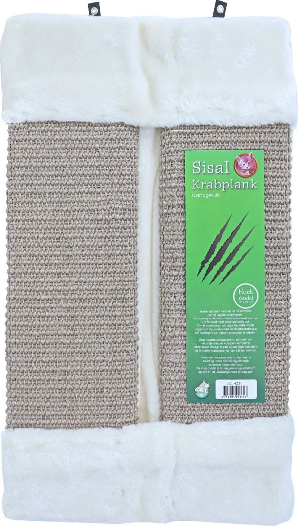 Boon Krabplank met Catnip Hoekmodel is gemaakt van sisal en pluche. Dit hoekmodel is buitengewoon geschikt om op een in- of uitwendige hoek te plaatsen. Katten hebben de behoefte om regelmatig hun nagels te scherpen, door te krabben aan materialen. Om te voorkomen dat je kat krabt aan meubels, tapijt, kleed of gordijnen, kun je een krabplank aanschaffen. Deze krabplank bevat ook catnip, voor extra krabplezier.