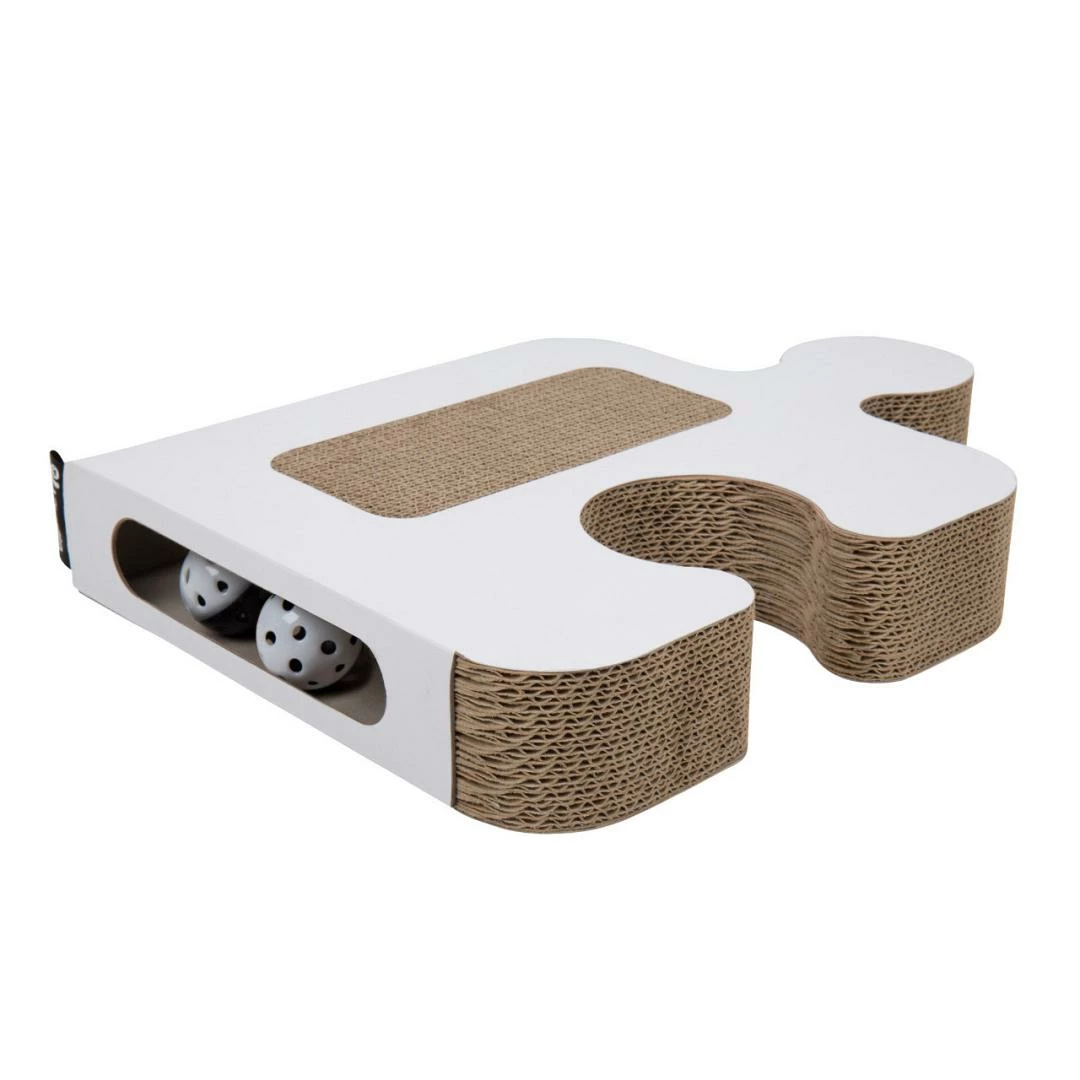 Krabben en spelen, wat wil een kat nog meer? Verkrijgbaar in twee neutrale kleuren, de District 70 krabspeelgoed Puzzle White voldoet aan deze twee favoriete behoeften van elke kat. Haal het jachtinstinct van jouw kat naar boven met behulp van de twee rinkelende balletjes, of als jouw kat even geen zin heeft om te spelen, dan kan hij altijd nog zijn nagels scherpen aan het golfkarton bovenop.