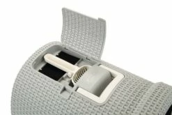 Bovenin zit een opbergruimte en een actief koolfilter dat zorgt dat nare luchten tegengehouden worden. De kattenbak is voorzien van een uittrekbare handgreep wat het verplaatsen vereenvoudigd.